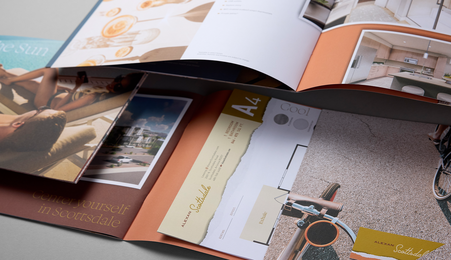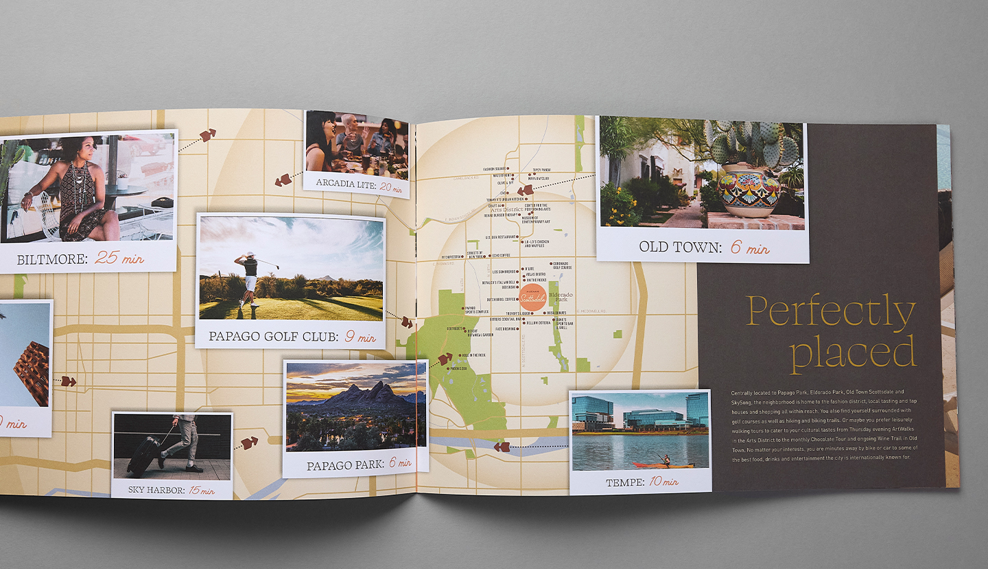 This Scottsdale community needed a brand that reflected its midcentury influence and desert setting. We designed a logo in a timeless script, paired with textures reminiscent of sun, sand, and paper.
