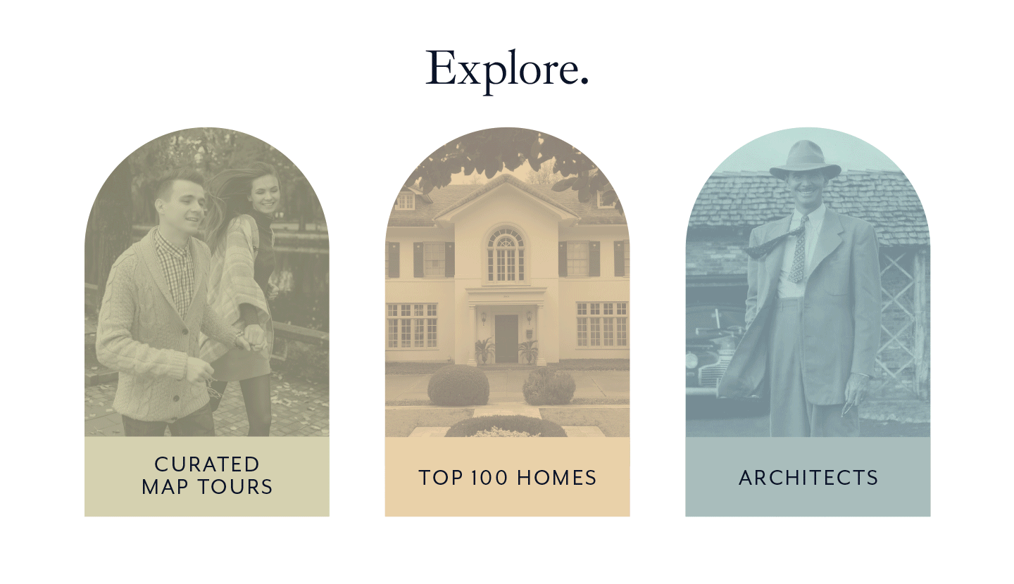 We designed a sophisticated website where users can explore by architect, style, and decade to learn the stories behind each home. A custom mapping tool offers curated walking tours through the neighborhood’s architectural history.